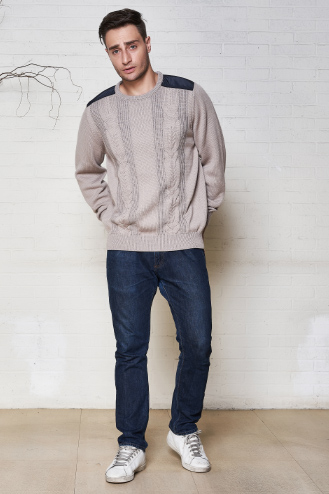 NTKM-01 Cable knit crewneck woven combined